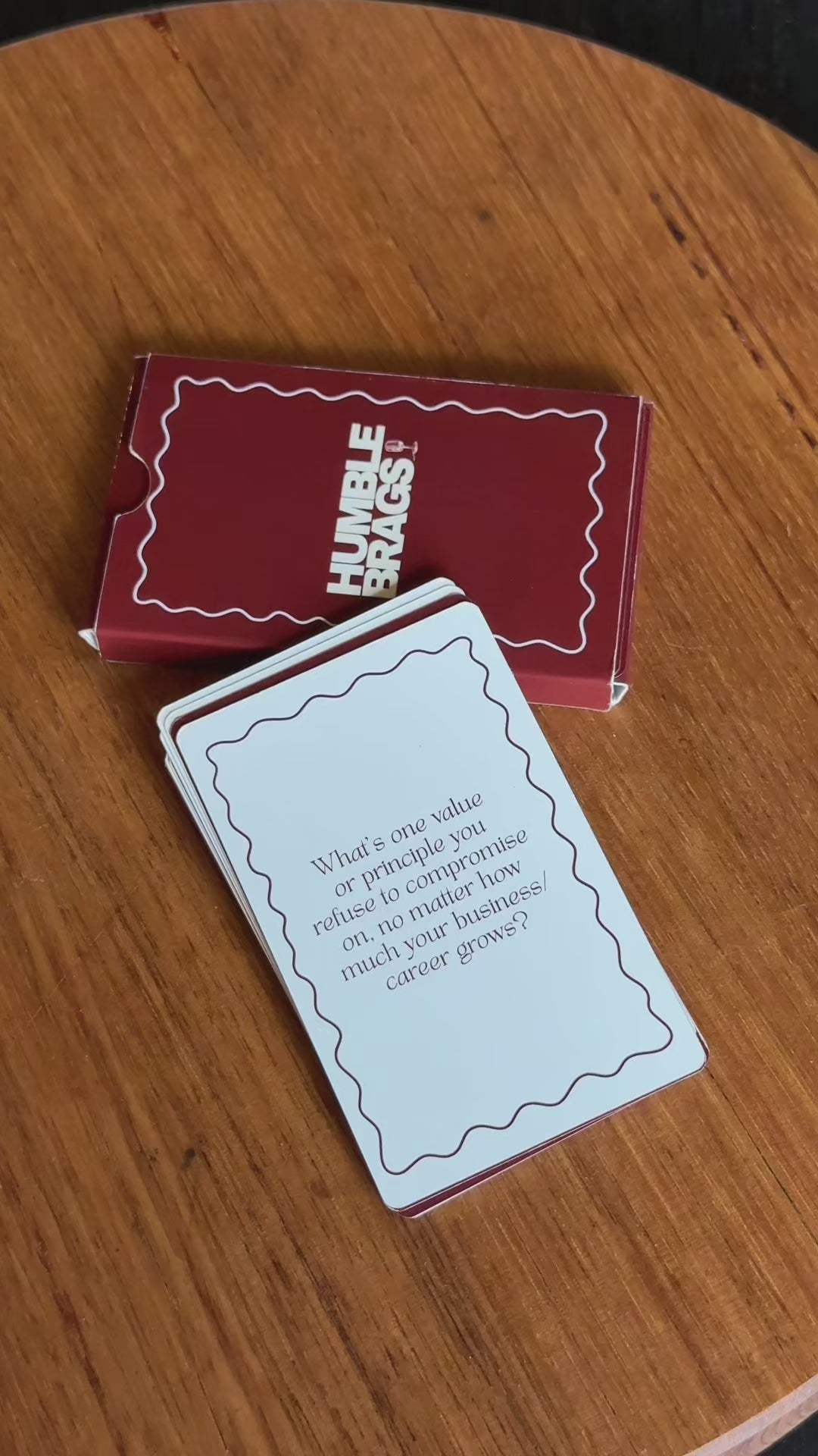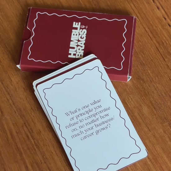 The Humble Brags Conversation Cards turns long lunches, offsites and events into meaningful moments. Made for founders, colleagues and business besties who want deeper chats, louder laughs, and brag-worthy breakthroughs, without the cringe.